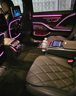 벤츠 S580 마이바흐는 이동 자체를 하나의 특별한 경험으로 바꾸는 궁극의 럭셔리 세단입니다. 마이바흐 특유의 존재감 있는 외관과 정교한 디테일은 한눈에 최고급 차량임을 보여주며, 실내에 들어서는 순간부터 항공기 일등석을 연상시키는 리클라이닝 시트, 최고급 가죽, 수작업 우드 트림이 탑승자를 깊은 안락함으로 감쌉니다. 주행 중에는 에어 서스펜션과 고급 방음 설계 덕분에 속도 변화가 느껴지지 않을 만큼 부드럽고 조용하며, 강력한 V8 엔진은 여유 있는 가속과 안정적인 주행을 제공합니다. 뒷좌석 전용 MBUX 시스템, 개별 조명 및 공조 제어 등 최첨단 기술은 탑승자의 프라이버시와 편안함을 극대화하며, S580 마이바흐는 목적지로의 이동을 넘어 ‘이동형 럭셔리 스위트룸’에 가까운 경험을 제공하는 차량입니다.